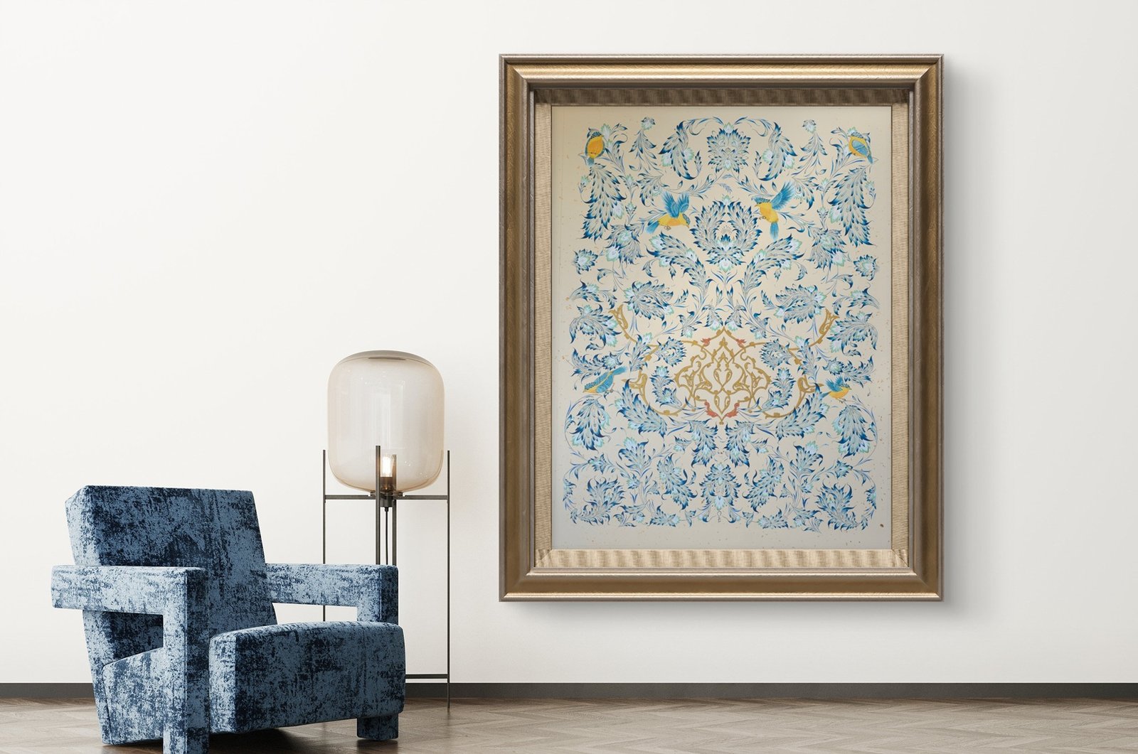 Sapphire Garden is a contemporary Persian painting rooted in illuminated traditions, where blue becomes a language of memory, resilience, and quiet devotion.